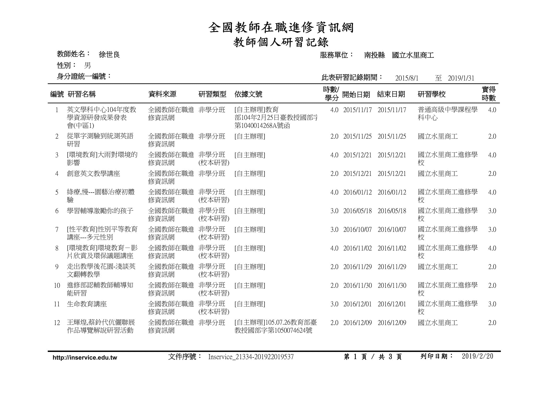 7 全國教師在職 非學分班 3.0 2012/10/19 2012/10/19 國立水里商工 3.0